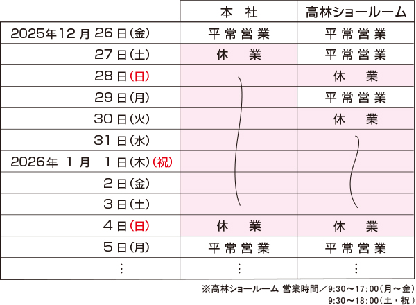 誠に勝手ながら、上記のように年末年始の休暇を頂きたいと存じます。